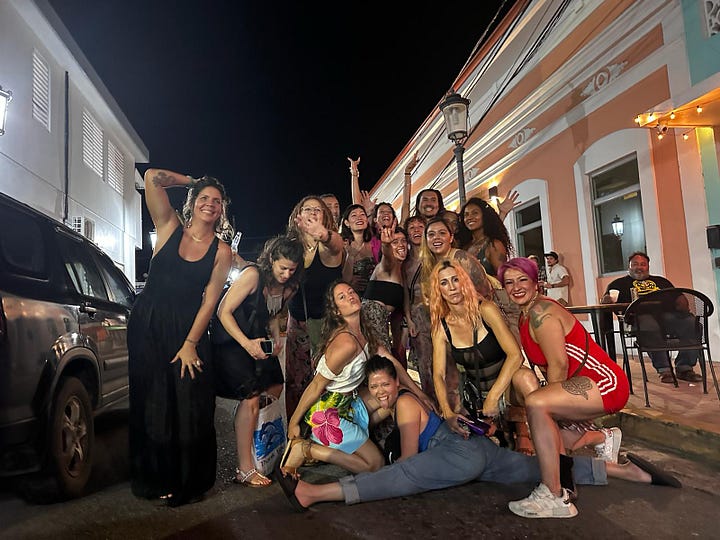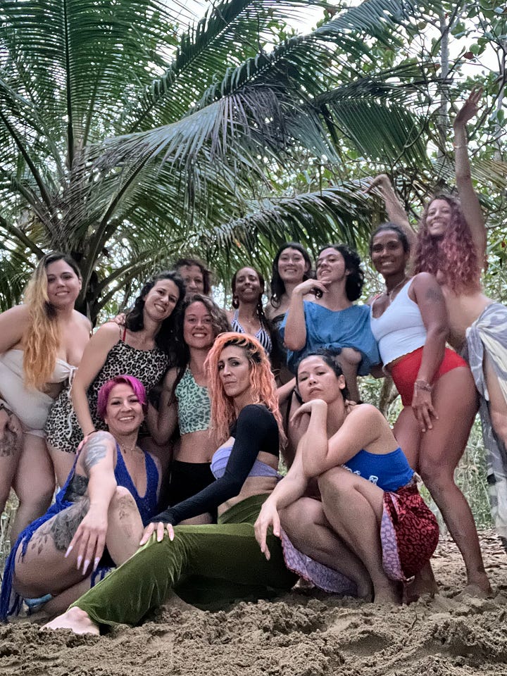 On Day 1 of the first Pussy Empowered Dance retreat, a tropical storm kept us from heading to the beach for “class” as planned. We 10 women crowded under a shade hut next to the pool at our Airbnb, rain blowing in sideways.